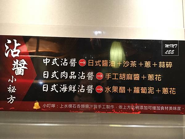▲有沾醬的搭配建議,我試過中式沾醬和日式肉品沾醬,