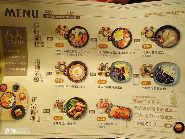 定食都包含主餐/四樣小菜/白飯或大醬湯/甜醬油嫩豆腐